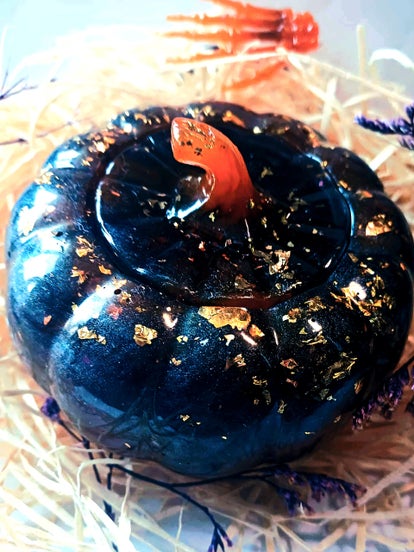 Handmade Trinket, This Stunning Pumpkin can be used as a candle holder when the lid is off, storage &/ ornament. Beautifully handcrafted, with time & love. Also come with ☆FREE Handmade mini candle🧡