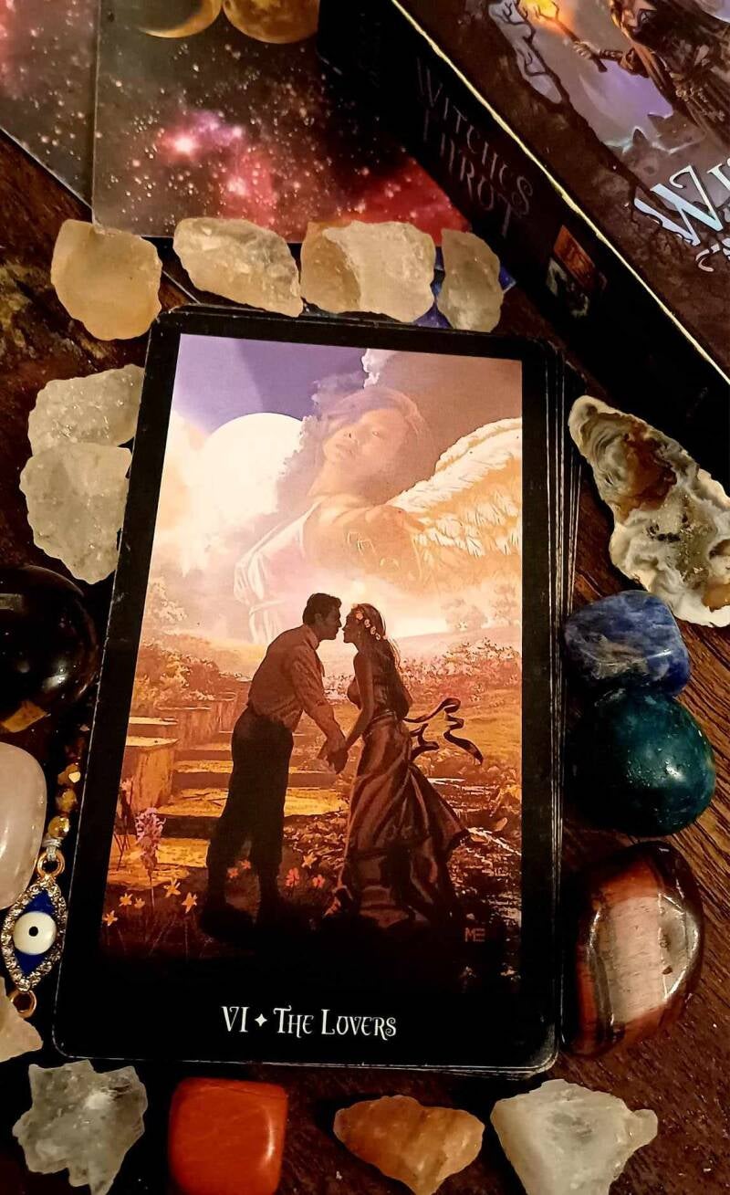 Upright: The card of Love and a deep connection. It represents harmony and equally reciprocated love. Sexual love, beauty, romantic relationship, decisions, commitments, balance and harmony, love heals all. One of the Soul Mate Cards and a positive one. The angels symbolises fate but also reminds us your choices today will affect your future.
