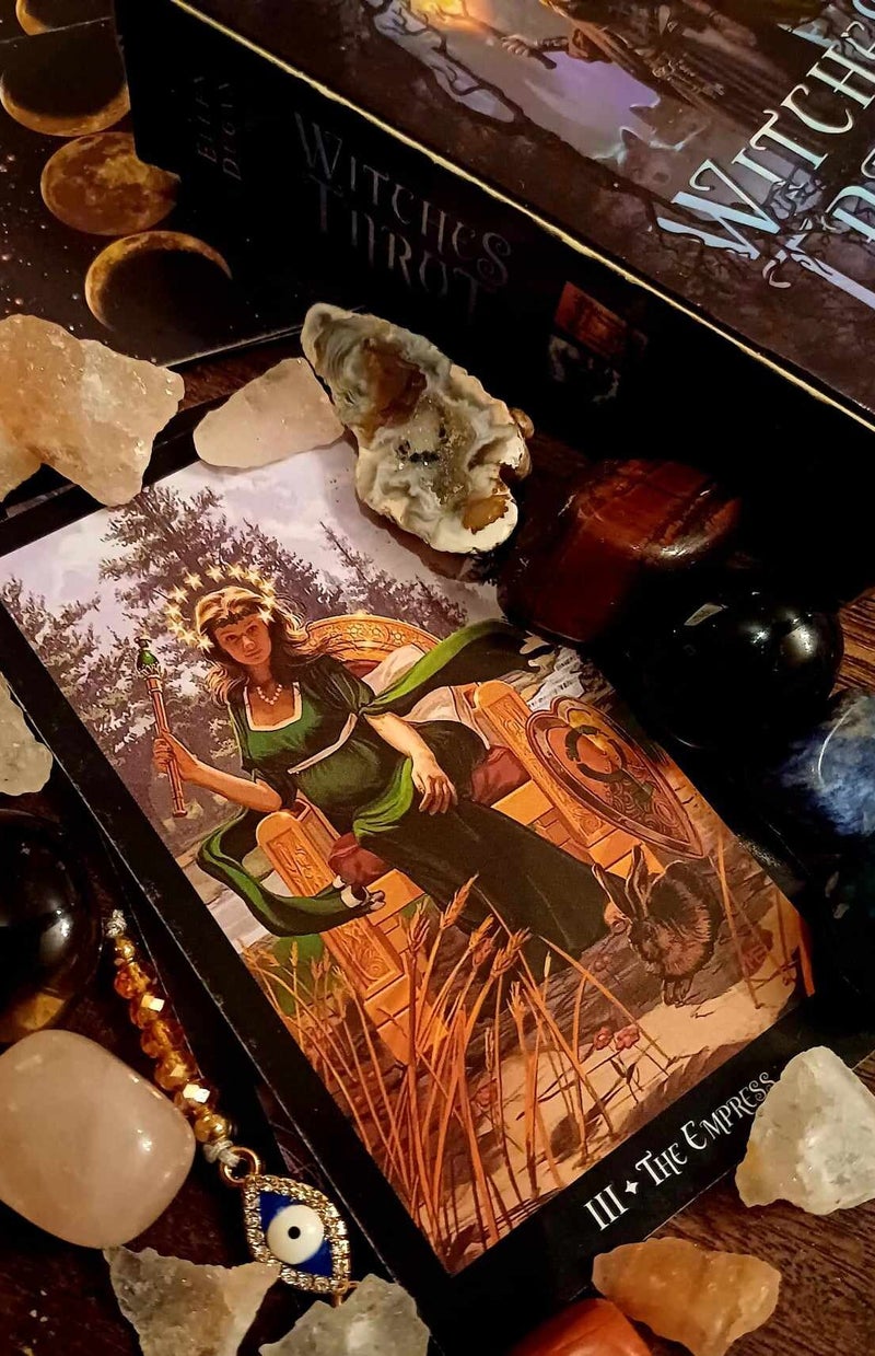 Upright: Mothering nature, feminine power and sexual energy. Motherhood; birth, reproduction, creation, home, protect the love in your life. Connection the the earth and the power of nature. An overall nurturing card that often represents domestic balance or the caring side of the emperor.