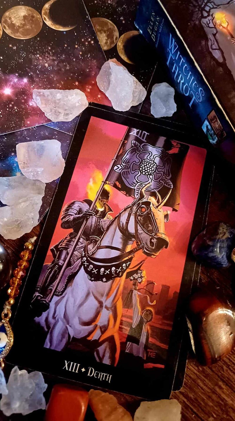 Upright: This is a deceptively positive card as meaning big changes and a new phase. It very rarely means actual Death. It's the end of the old and start of the new. Rebirth, transformation, moving forward. It usually represents ending for a new beginning or ending things as they are to transform for the better.