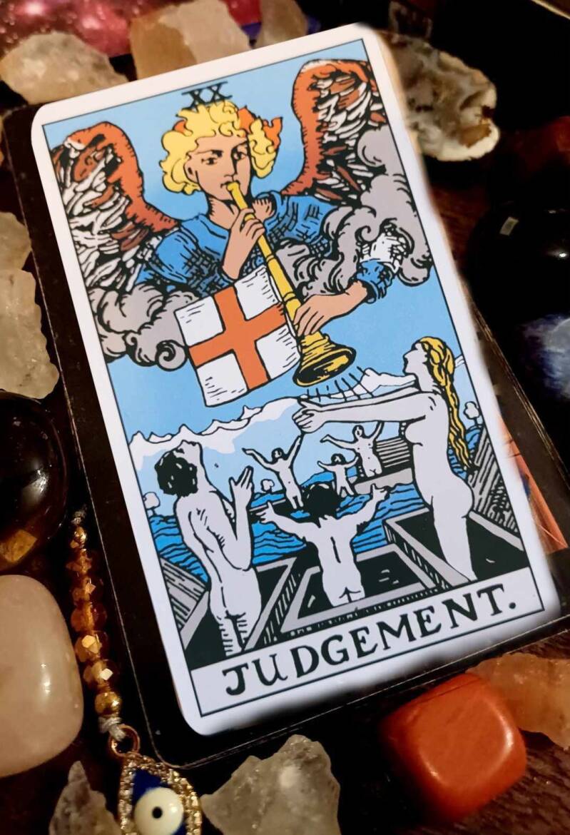 Upright: Judgement, rebirth, inner calling, absolution, self-evaluation, awakening, renewal, purpose, reflection, reckoning.