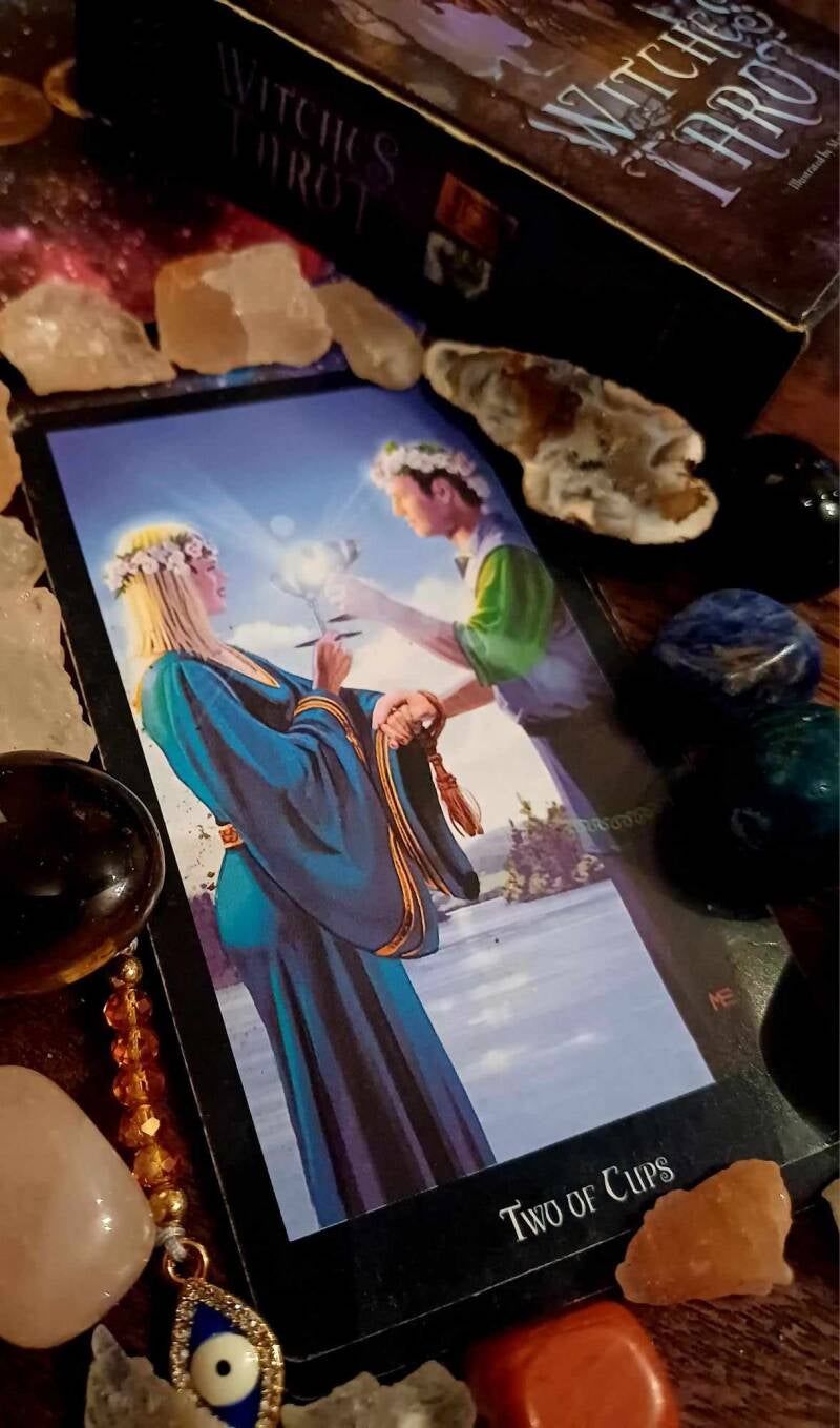Upright: Romantic love, partnership, Harmony in a relationship, commitment, true love, teamwork. Balanced finances and positive work relationships. This card can represent a deep connection that has existed in previous lifetimes.