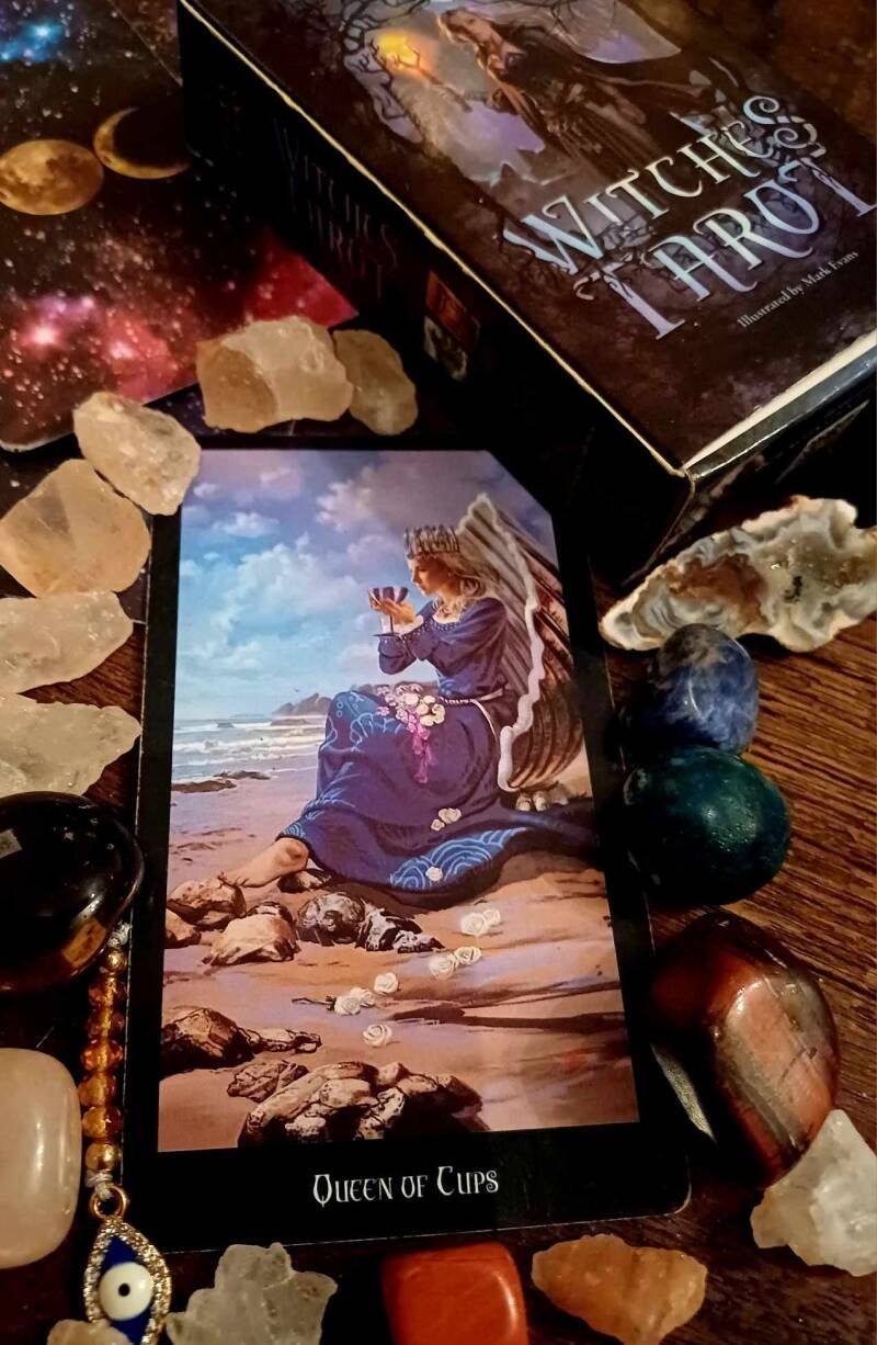 Upright: Then queen of healing and nurture. Currently healing or needing support. Security in the relationship, emotionally mature, supportive, femininity, loving, warmth, sensitivity, kindness, happiness, caring intuition. A very empathic and caring woman.